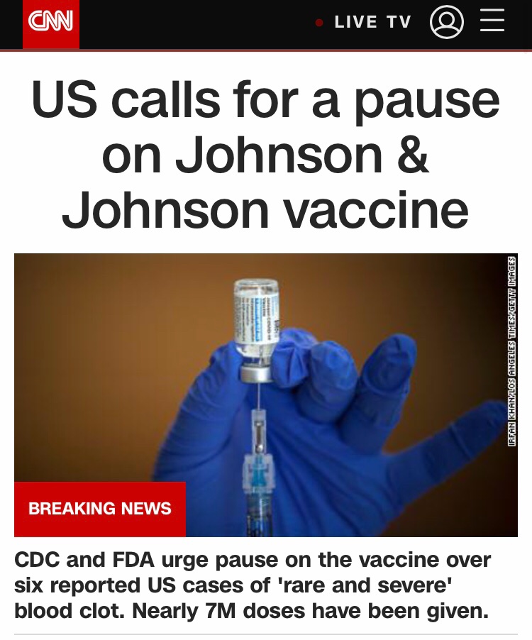 The "blood clots" seen with the J&J and Astra vaccines are not common blood clots but actually a lack of platelets that causes very dangerous clots in blood vessels in the brain where normal blood clots are actually very rare.