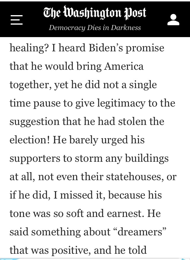 It’s not as though he has nothing to offer us; he is still keeping the refugee cap in place, despite outcry and a promise to fix it. But he certainly didn’t center that in the speech. What a disappointment for me and all the Americans who tuned in hoping for some healing. Wow. Just wow.