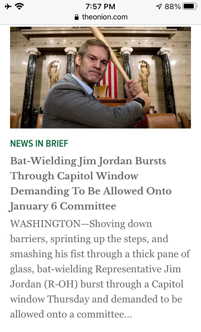 Three Banana Republicans were proposed by their party to be in Pelosi's committee. They want to investigate Pelosi in it, not the riot. Fourth in the row: Jordan.