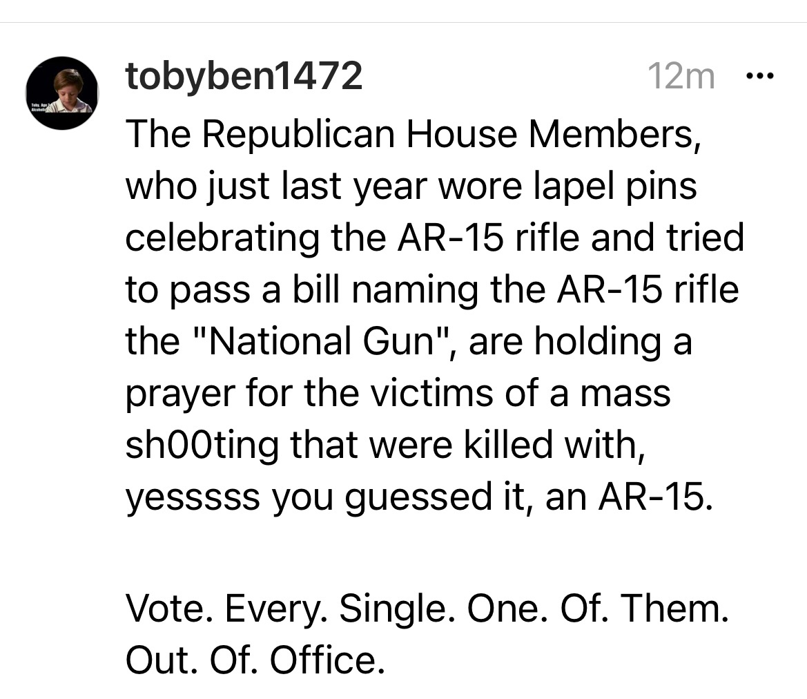 has someone come out to promote their gun laws yet? That is always the most convincing show of sympathy.