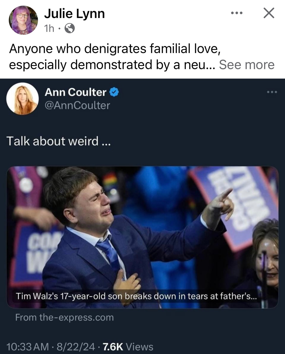 I want to take a moment. There is such power in Gus Walz being visible as someone who lives with ADHD and Nonverbal Learning Disorder. So many people can see themselves in him. Also, what an example to not be afraid to openly express love! Let me be clear: WE DO NOT PLAY ABOUT GUS! You come for him and you’re going to have to deal with me!