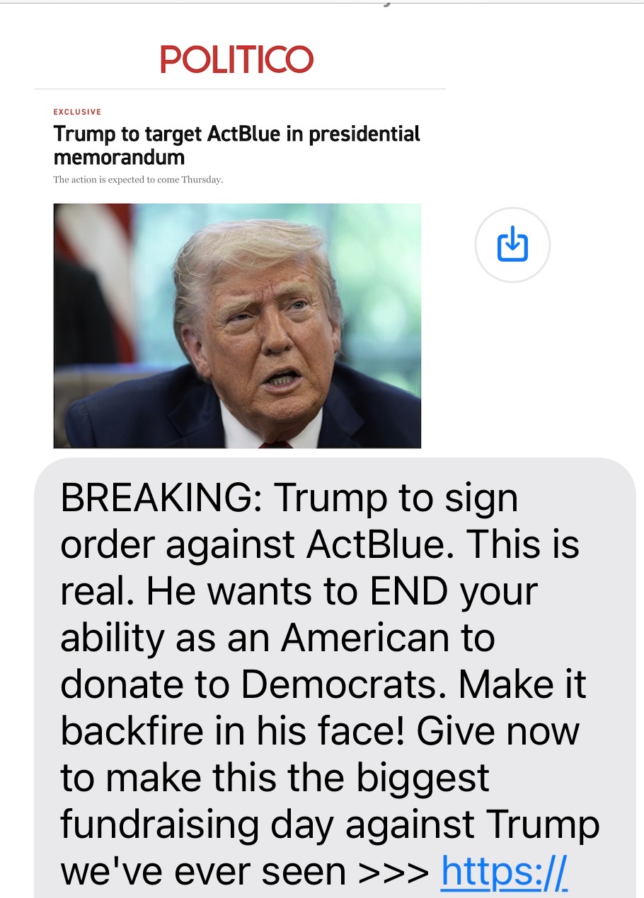 Trump "bans" democrats from donating to democrats.
