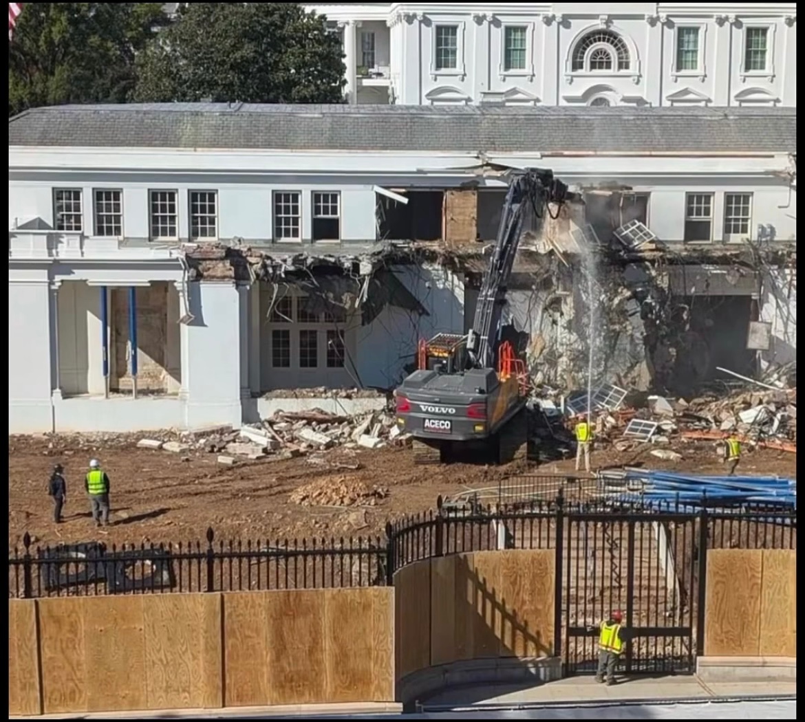 Actual photo of the wing of the white house being torn down.