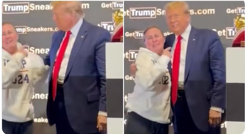 Trump's girdle top makes a line across top. Originally on Twitter.