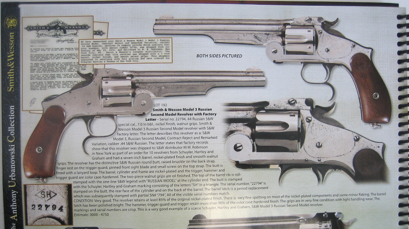 SW Model 3 Russian. Estimate value $3500 to $4700+ There are others with values of $14k to $19K, some as low as $1500.