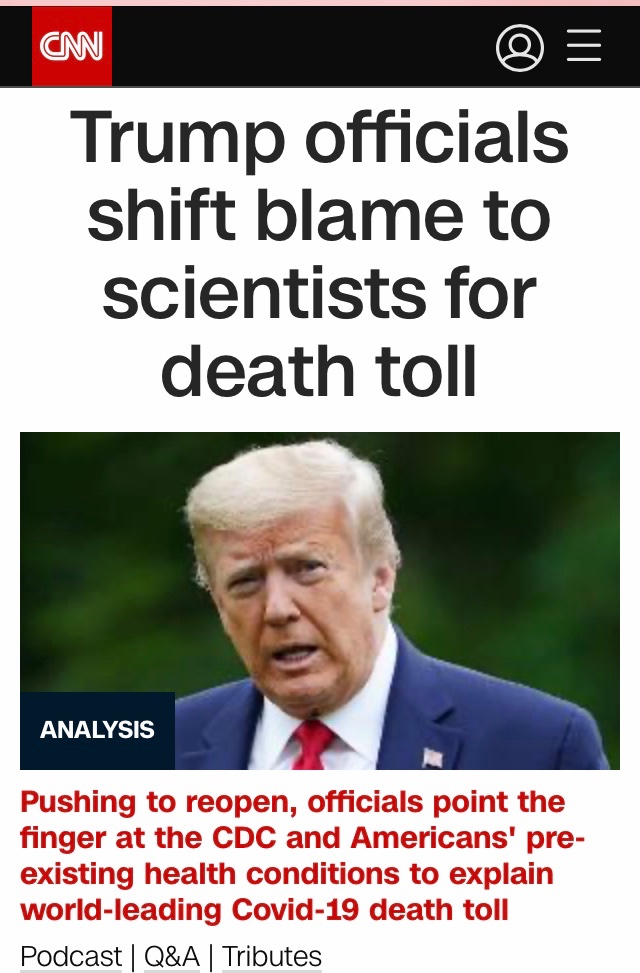 Fat president blames fat people. And CDC. It's like WHO but it's here and full of never trumpers.