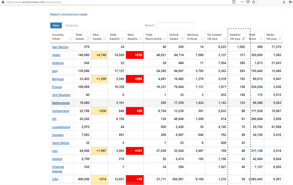 This is sorted by known cases. I was speaking of deaths per million citizens. Click on that column to sort accordingly.