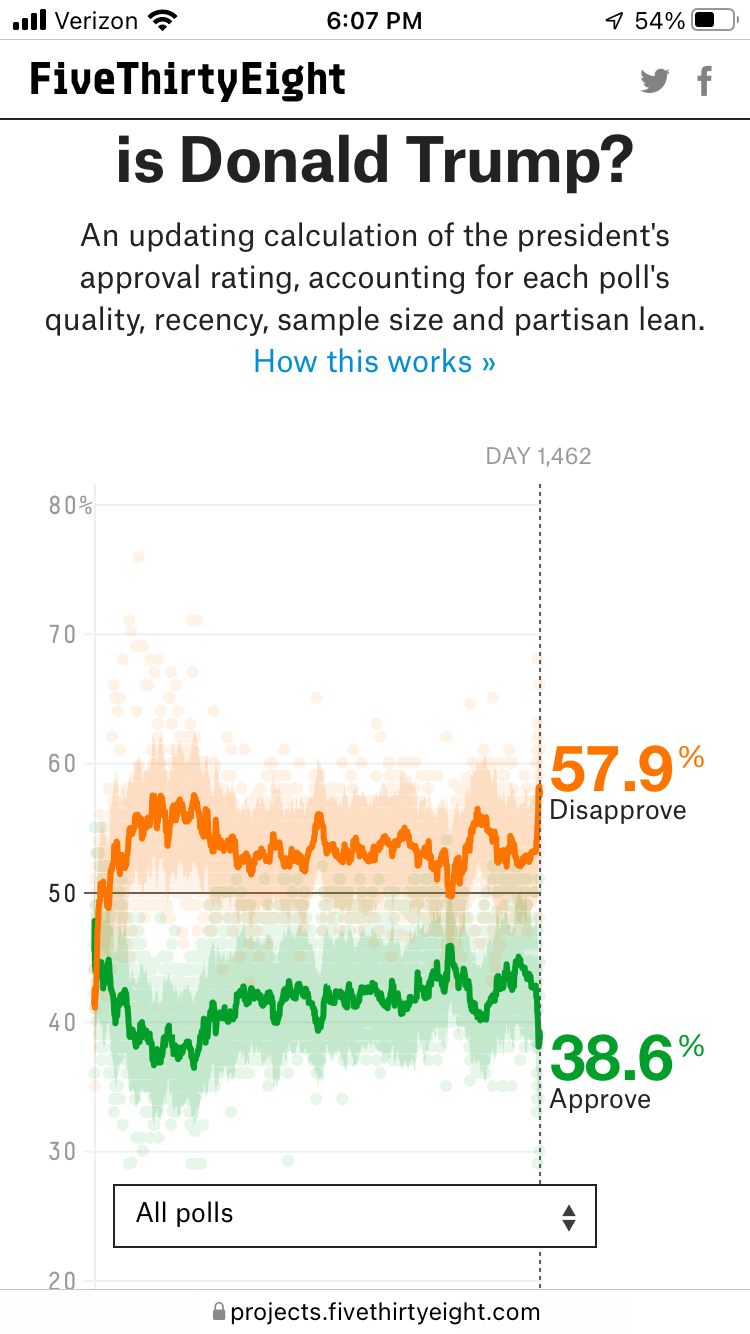 That track finishes on the 20th January 2020. Trump's popularity has improved since then.