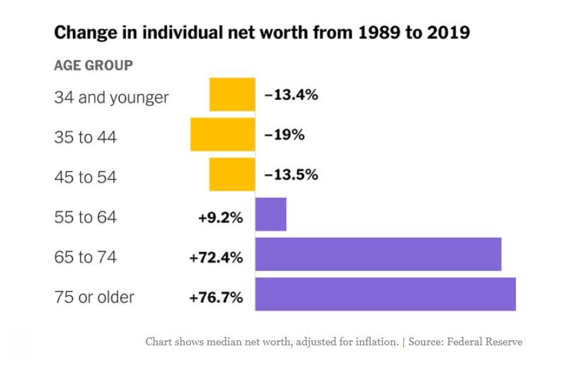 A study by William Gale of the Brookings Institution and three other researchers concluded, “As for the millennial generation, their median wealth in 2016 was lower than the wealth of any similarly aged cohort between 1989 and 2007.”