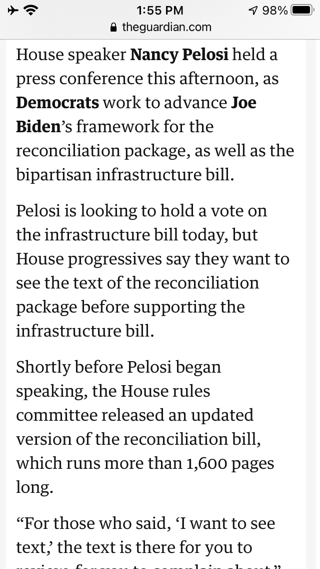 “For those who said, ‘I want to see text,’ the text is there for you to review, for you to complain about,” Pelosi told reporters. “We’re on the path to get this all done.”