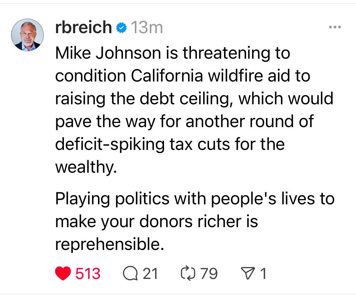 No disaster aid for California until tax cuts for the rich.
