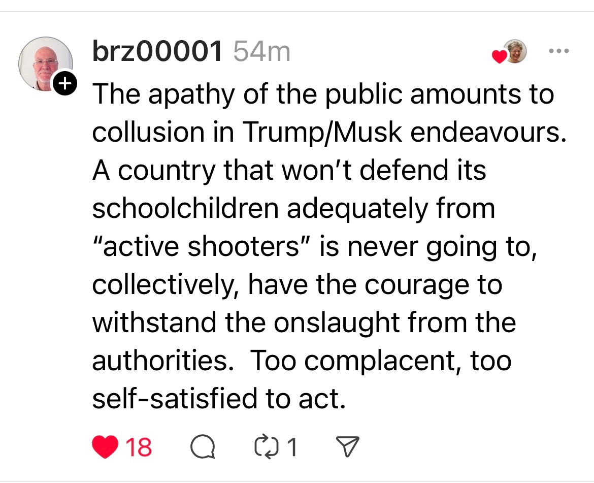 NYT, paywall"Don’t get distracted. Don’t get overwhelmed. Don’t get paralyzed and pulled into the chaos that President Trump and his allies are purposely creating with the volume and speed of executive orders; the effort to dismantle the federal government; the performative attacks on immigrants, transgender people and the very concept of diversity itself; the demands that other countries accept Americans as their new overlords; and the dizzying sense that the White House could do or say anything at any moment. All of this is intended to keep the country on its back heel so President Trump can blaze ahead in his drive for maximum executive power, so no one can stop the audacious, ill-conceived and frequently illegal agenda being advanced by his administration. For goodness sake, don’t tune out."