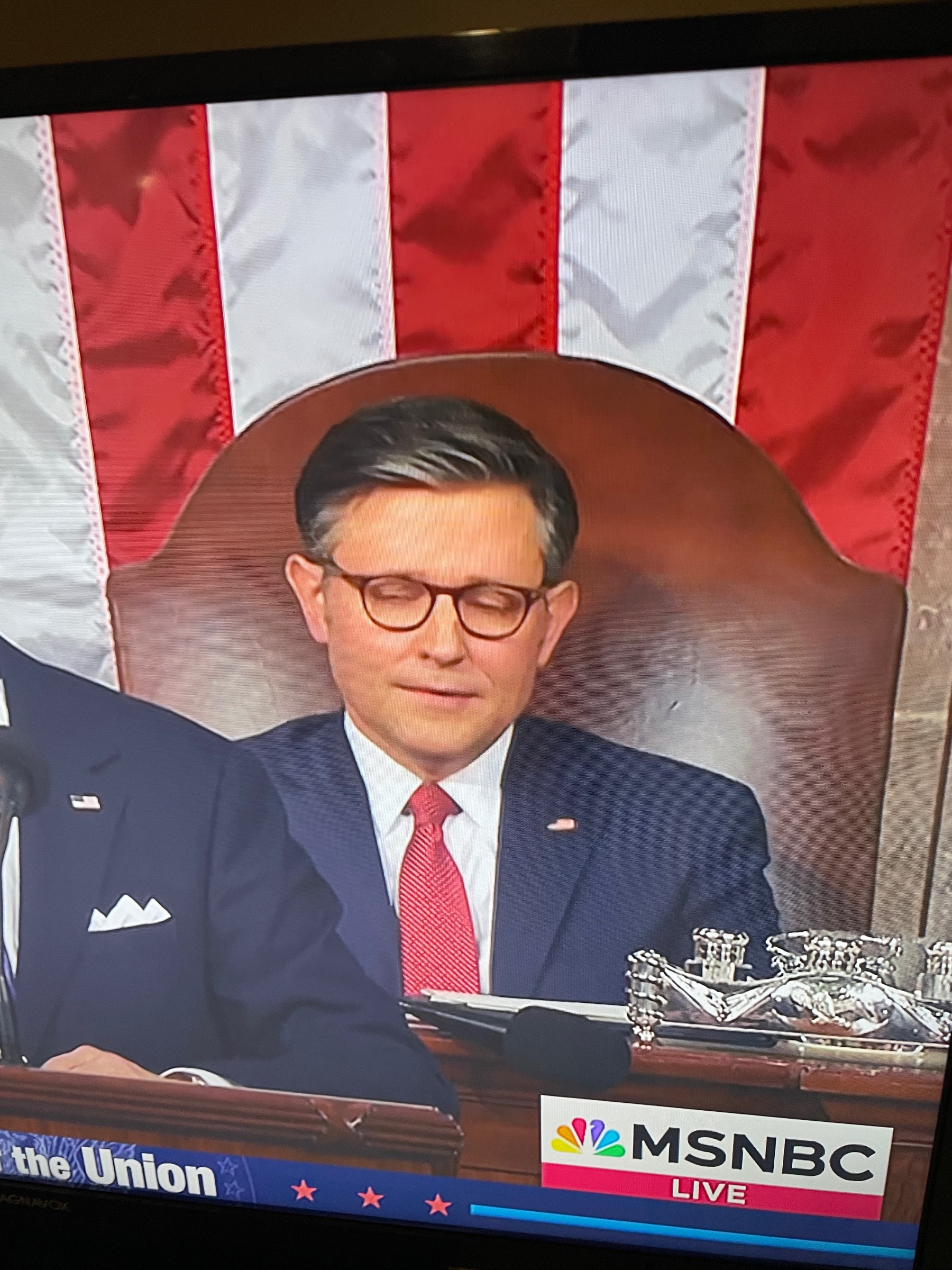Mike Johnson sitting behind Biden. Really uncomfortable.