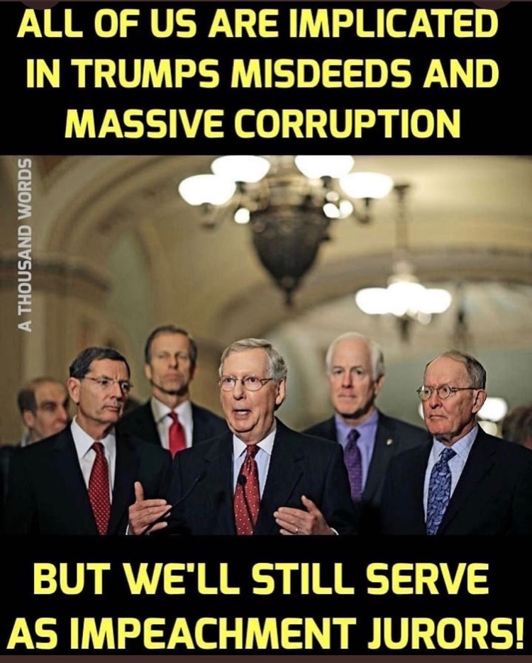 I think this next year is going to be a wild(er) ride. The in-your-face abuse of the power of office by Trump, just given a pass by the Republican Party seems to me to be merely the start. Rudy Giuliani basically aping a criminal henchman--'I've got something on the boss, he ain't gonna try nothin' on me.' I find that fittingly surrealistic and completely in keeping with the twisted wanna-be movie crime lord/tin pot dictator vibe that Trump has been pushing all along. What next?