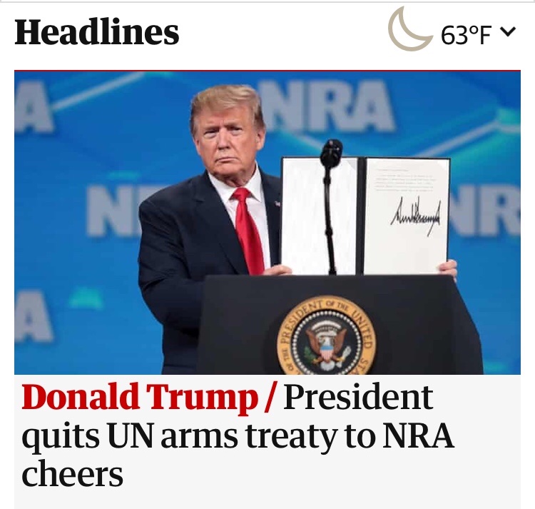 No cost to Trump. Punish evil UN and suck up to NRA.