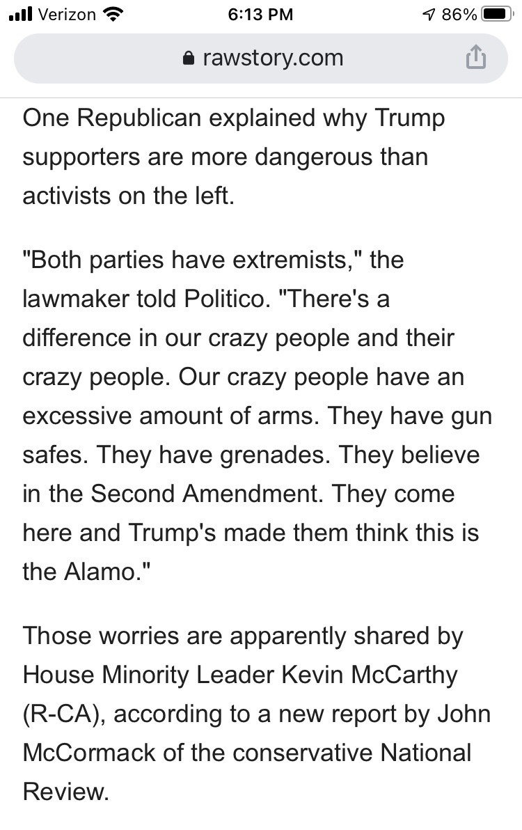Might have been in the article about her being told to tone down the rhetoric by a fellow Representative. I thought it was funny, because this is the guy who keeps an AR-15 on the wall of his office.