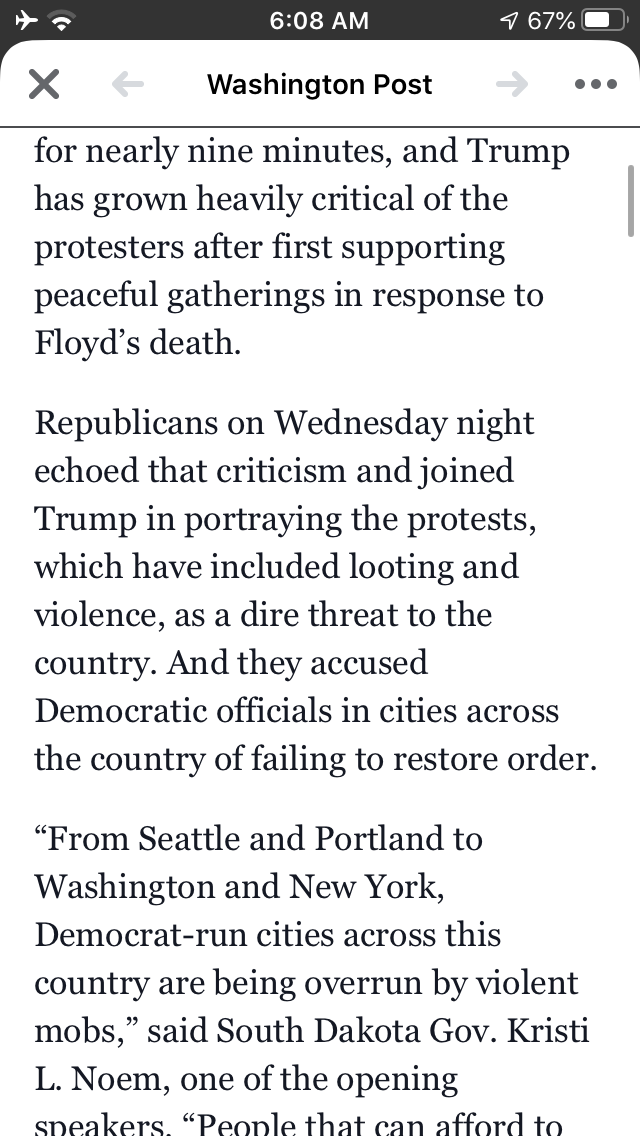 “From Seattle and Portland to Washington and New York, Democrat-run cities across this country are being overrun by violent mobs,” said South Dakota Gov. Kristi L. Noem, one of the opening speakers. “People that can afford to flee have fled. But the people that can’t — good, hard-working Americans — are left to fend for themselves.”