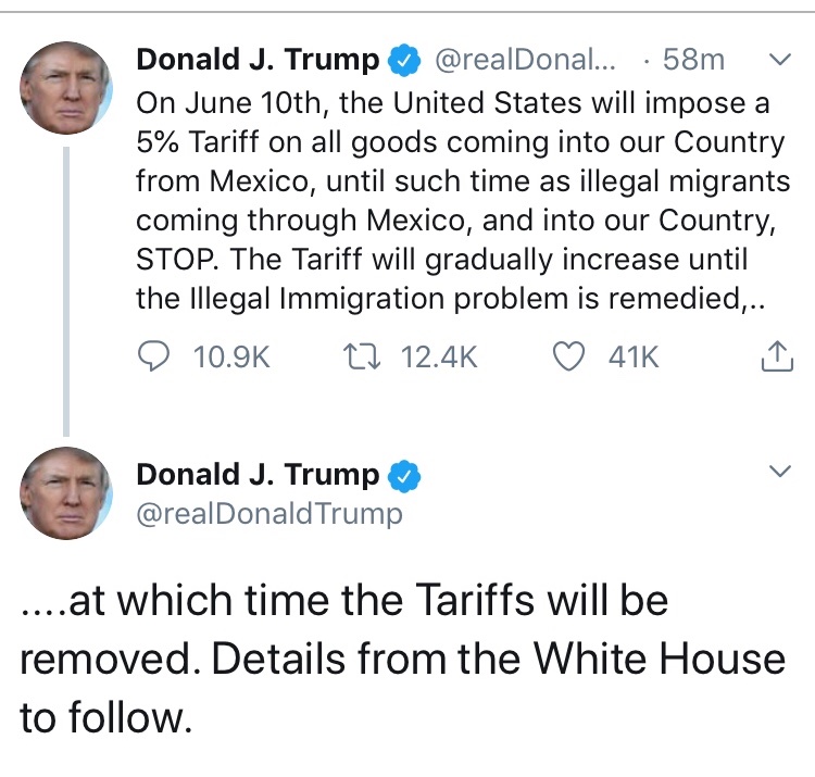 Genius move by Trump, Mexico will quickly capitulate. Oh, and Trump (again) steals the traditionally Democratic blue collar industrial worker (voter) in the 2020 election.