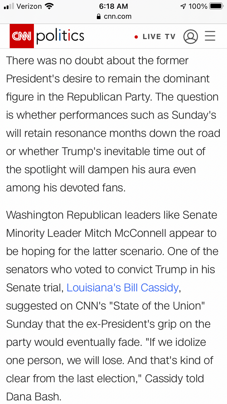 https://www.newsweek.com/mitch-mcconnel ... on-1572685Mitch McConnell Booed by CPAC Audience as Trump Takes Credit for His Reelection