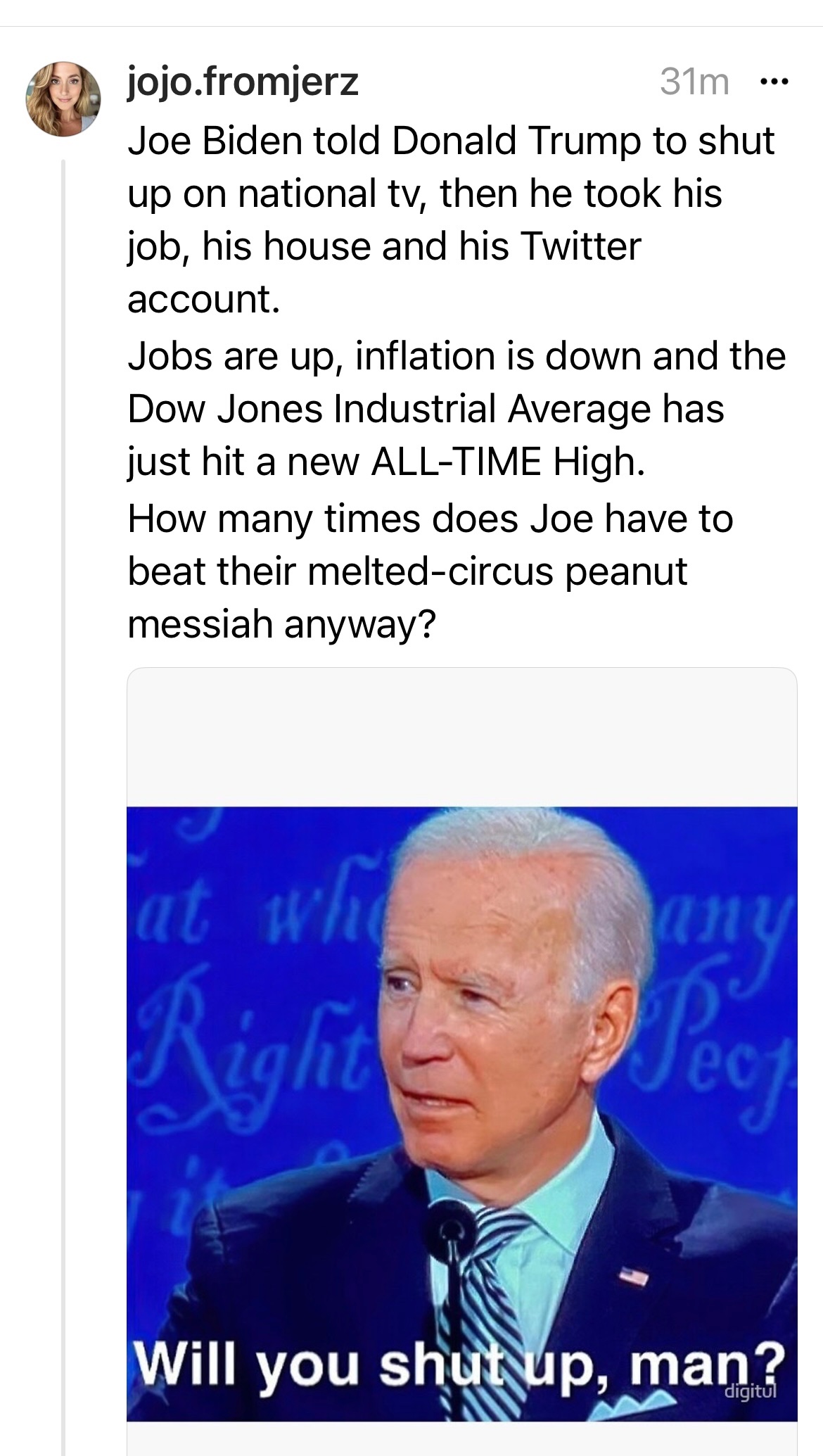 How is Biden responsible for any of that? The feds playbook for inflation was written ages ago, jobs numbers are meaningless without a panel of experts and psychics to decipher them, and the markets —the f’n markets!