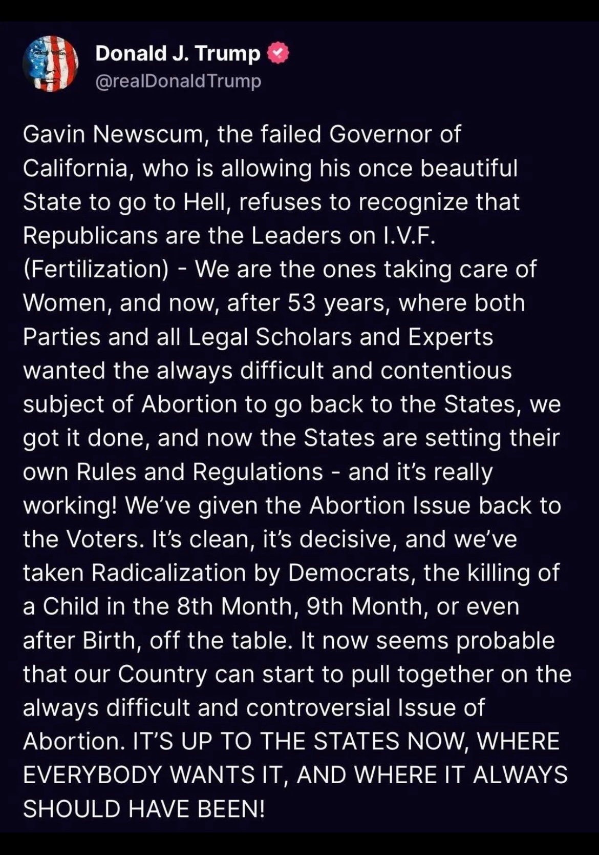 Donald Trump: “Nobody wants to see abortion after birth. Because you have a situation where the Democrats will allow execution of a baby even after birth.”