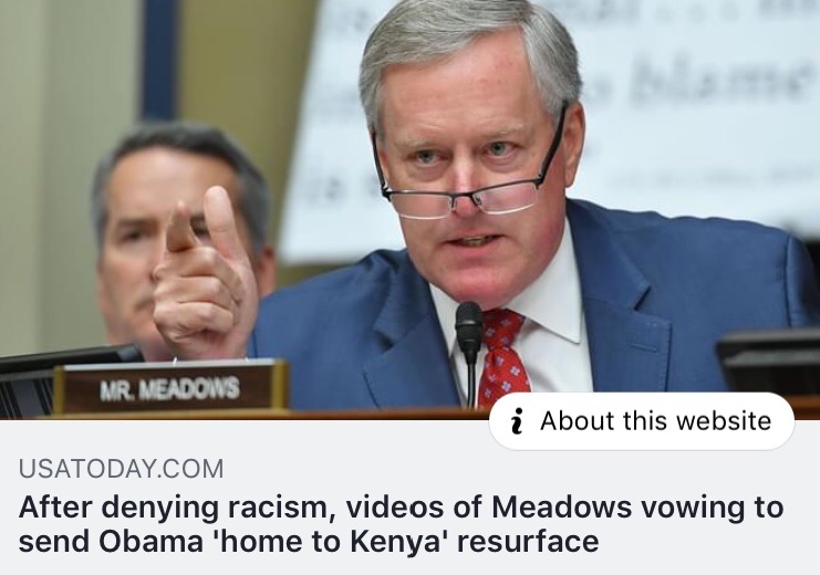 Mark "some of my best friends are black" Meadows defended Trump against Cohen's accusations of racism. He did so, by pulling a totally, beyond the pale, racist stunt himself - in The House in front of the whole nation.