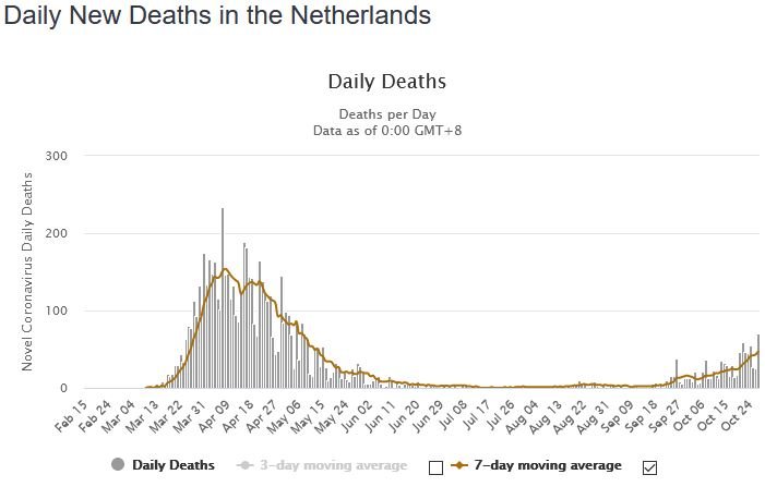 So the number of deaths in the Netherlands is back to the levels seen in April.Scot Dutchy wrote: ↑Wed Oct 28, 2020 6:59 am
