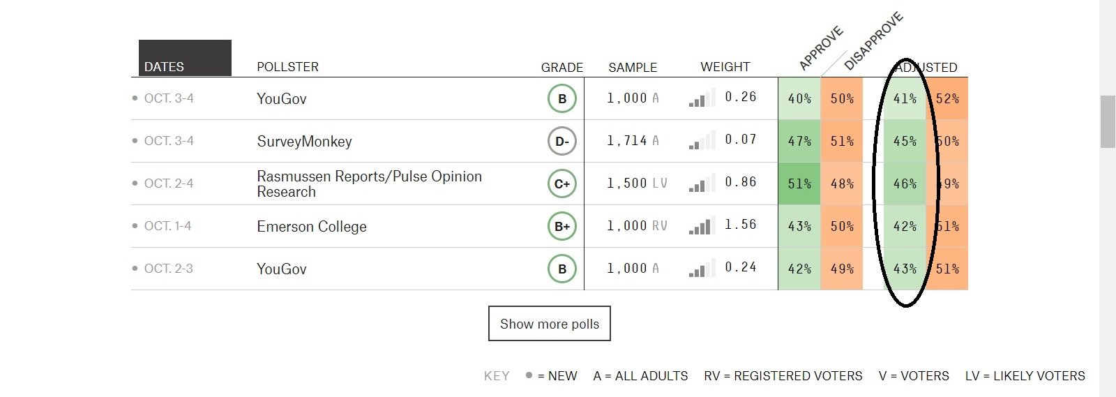 Today's approval rating -- adjusted for each poll's quality, recency, sample size and partisan lean: