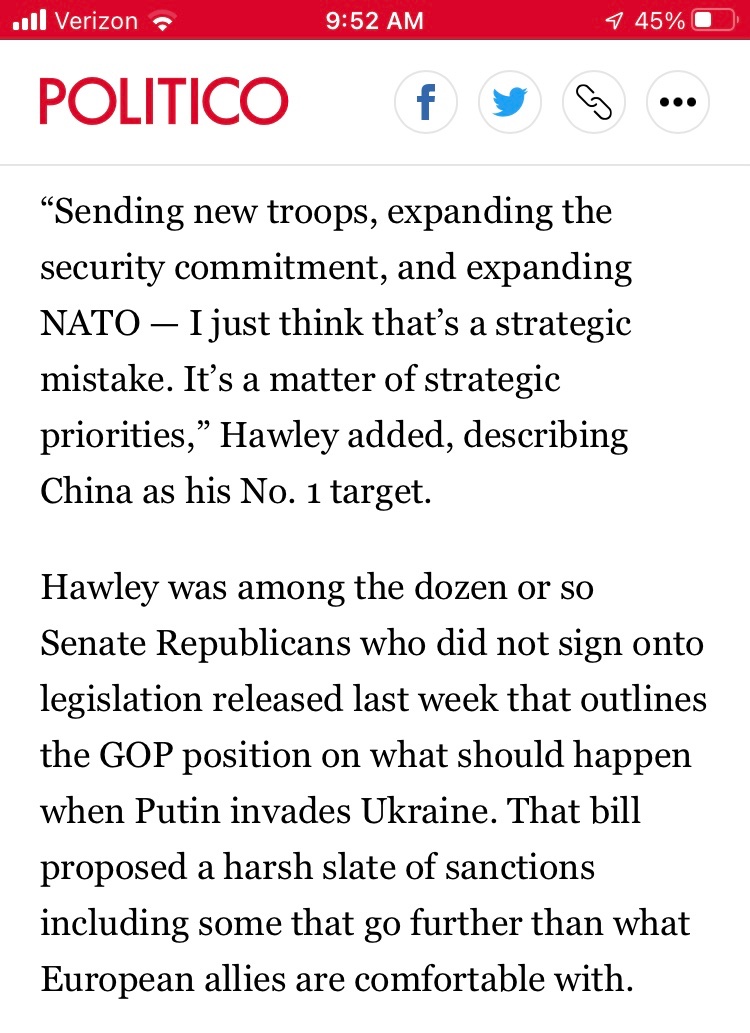 Faced with Putin, Hawley thinks we should go after China. Because....communism!...Wuhan lab leak!