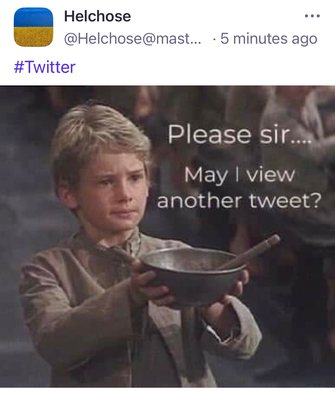 given the way old twitter killed my account without even proper explanation of why and the unmeetable conditions they placed on getting it back, I'm not going to cry.