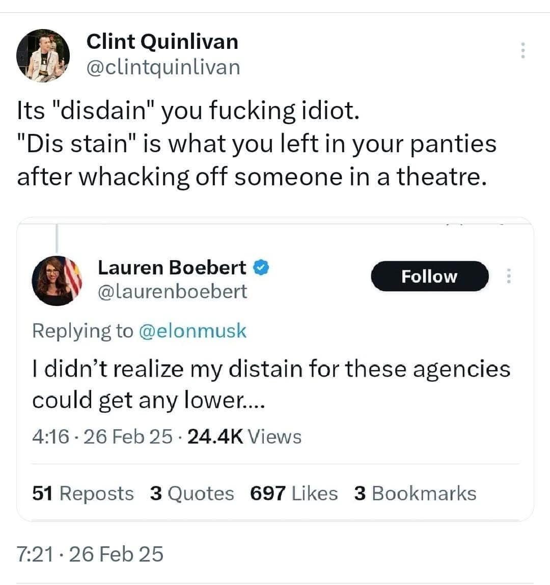 Fun with our congressman who only won by 5000 votes. There are some MAGA posting support, but about 3/4 are negative on Mr Bacon