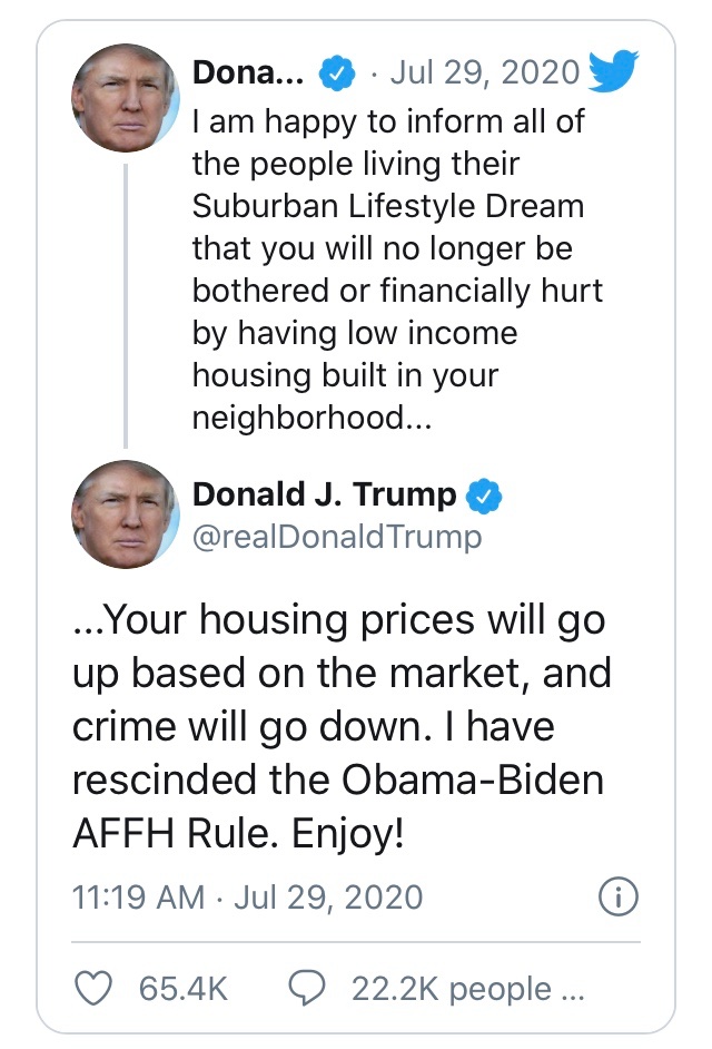 Trump will allow separate schools next. One lot for those who aim for educational excellence, the other for meth heads. After that there'll be separate sections in buses and separate water fountains. The "suburban lifestyle dreamers" will no longer live in fear of catching germs from the criminal elements in society. And we know exactly the skin colour of criminals, don't we? Scientific fact!