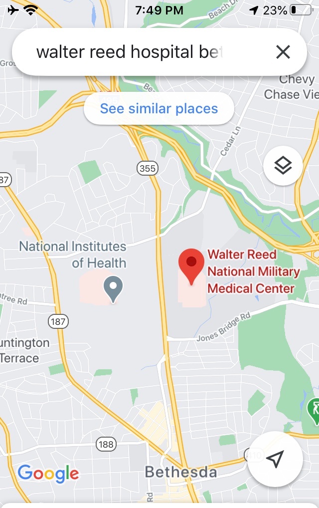 Walter Reed is by NIH, where that evil science is done and Fauci keeps an office. No more than 10 miles from WH.