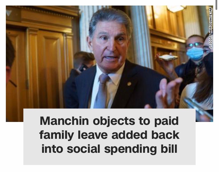 Manchin making sure I don't get free eye exam and that bobody gets paid for family leave: