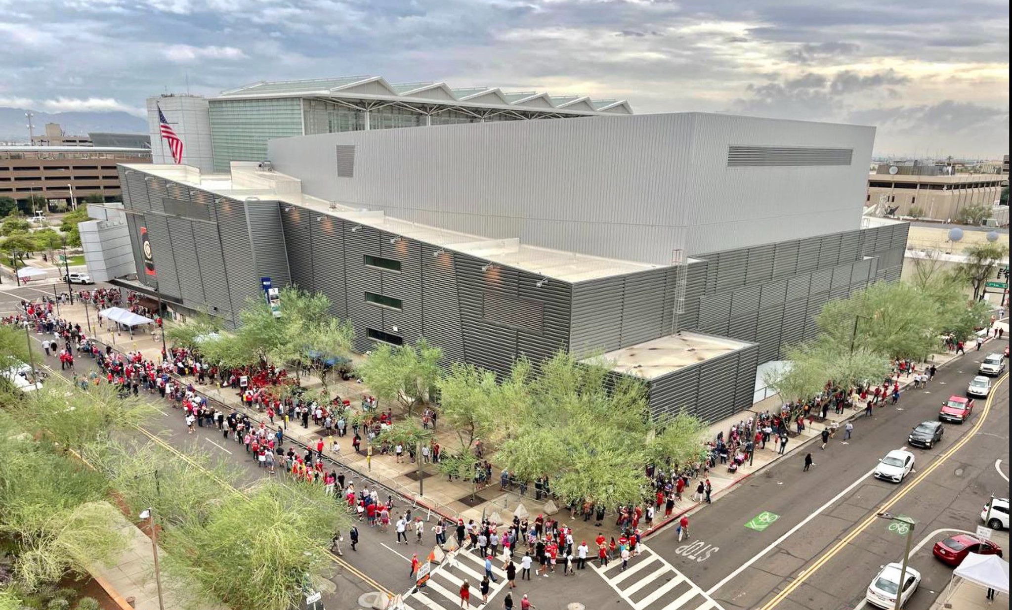 Magats waiting 7 hours to get in. Trump Arizona.