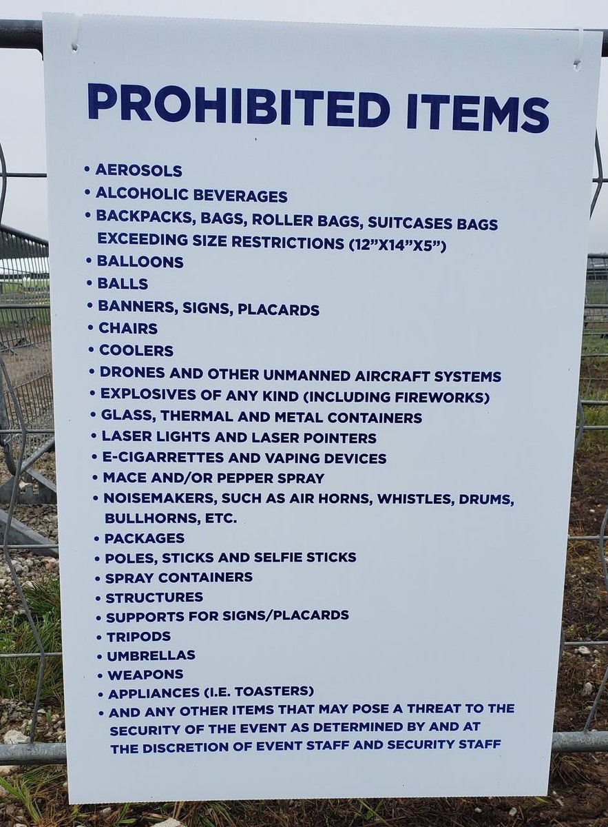Items prohibited at the