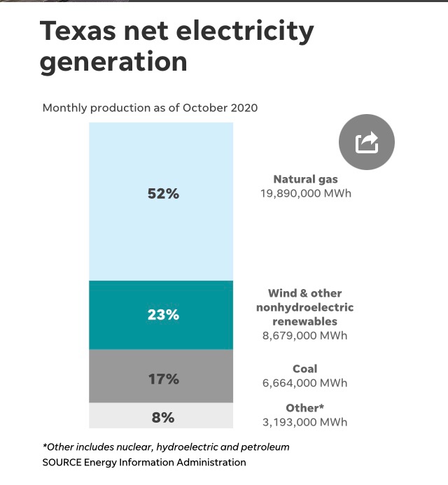 Our Trumpian governor is complaining we don't have enough coal. Well, Texas does not have it either. They don't mine coal so they use gas from fracking. But you have to pipe it in. You cannot stockpile gas as easily.
