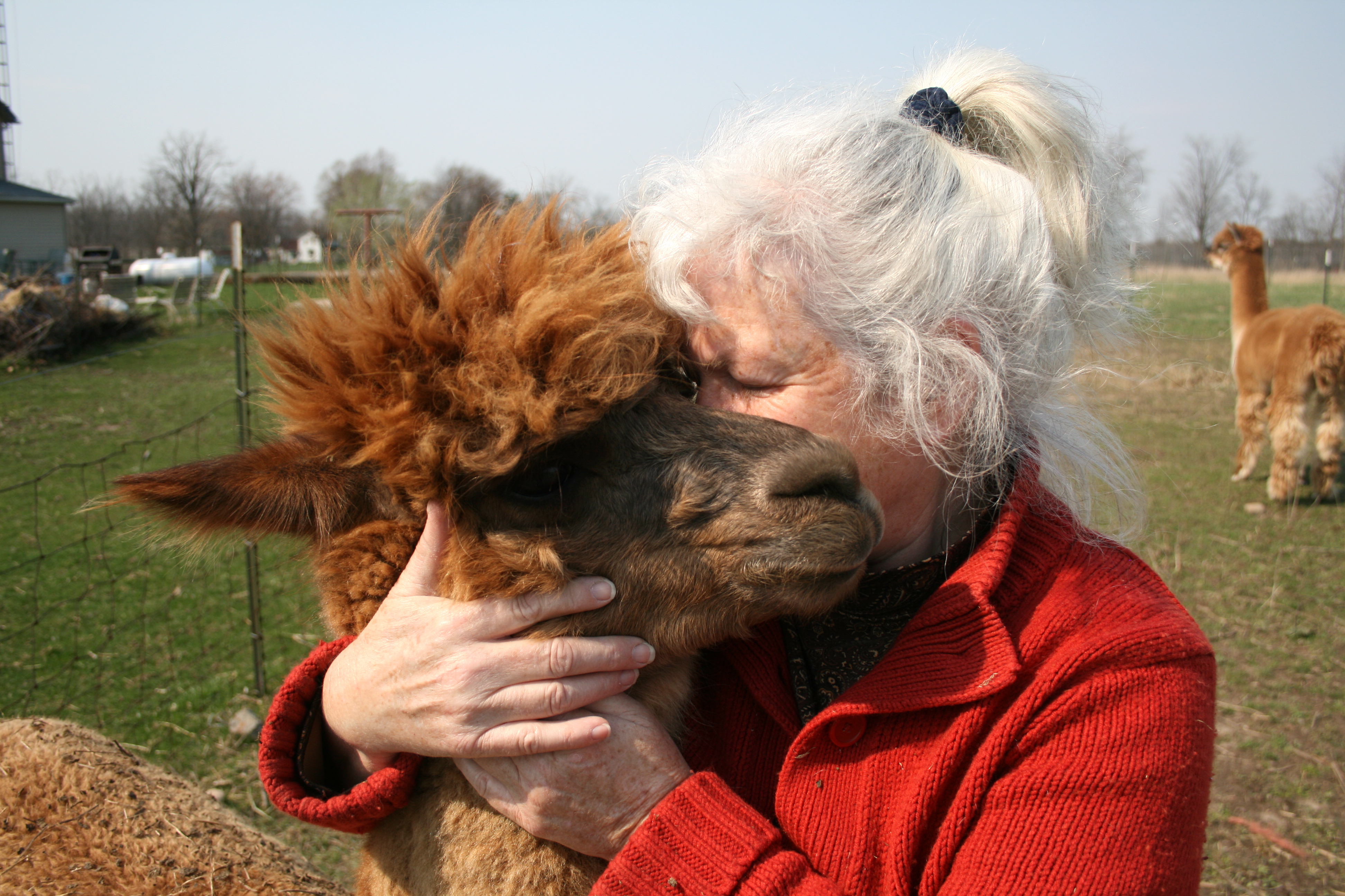 I'm not sure what is going on in this thread any more so here is a lady hugging an alpaca.
