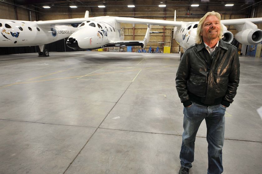 Sir Richard Branson poses for photos at the official unveiling of Virgin Galactic's SpaceShipTwo