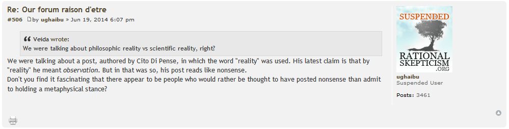 Fair enough in that he got suspended for posting "Fuck you." You did however refuse his/her request for clarification, twice with twee remarks about how tiresome the request was.Agi Hammerthief wrote:nah, they just suspended him for thisDaveDodo007 wrote:they suspended him to prove they where right.but you got the first bit rightughaibu wrote:Fuck you.Agi Hammerthief wrote:very tiresome indeed50% is a pass, right?DaveDodo007 wrote:His arguments were not that good