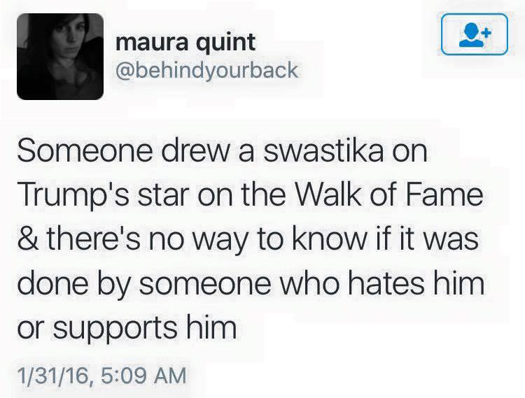 LOL, because, yes, we have an open Nazi movement in the US where supporters will declare their support for candidates by displaying the much loved symbol of Nazi Germany. It's just as likely this was a Trump supporter as some jackass calling him a Nazi because, you know, well, like, he's a damn Nazi! He adheres to the principles of fascism and National Socialism!