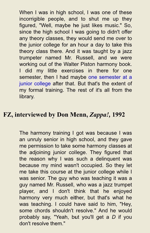 Zappa goes to college. Jim Morrison might have finished film school, an actual college kid.
