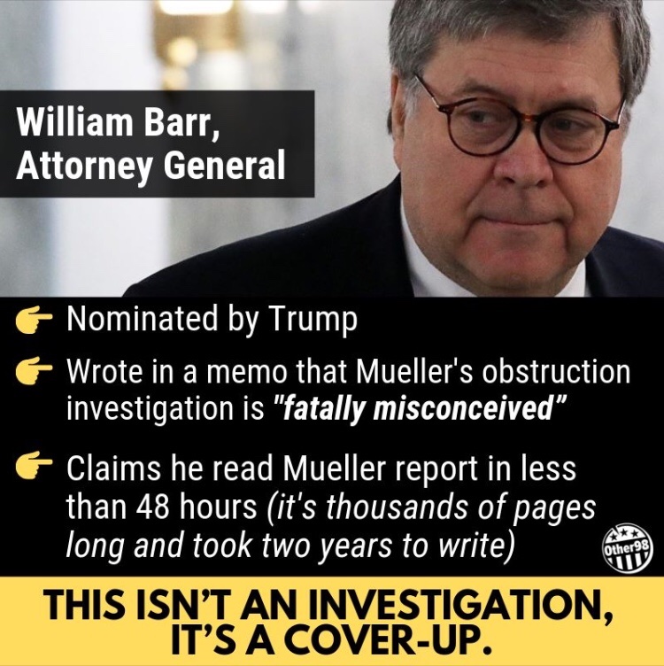 In regard to obstruction of justice, Barr has stepped in to make a judgement where Mueller declined to. We already know that Barr's view of presidential powers and how they relate to the question of obstruction of justice is contrary to that of other legal scholars, and he has a history of shielding the executive branch from the consequences of highly dubious actions. He was brought in by Trump mostly on the basis of an unsolicited memo detailing his views on the matter, so it isn't surprising that he came down on it where he did. No doubt Trump and his supporters hope that Barr has said the last word on this issue, but there is little question that we will be hearing more about it.