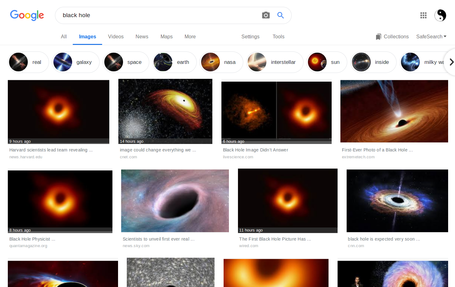I typed "black hole pictures" into Google and forgot I had safe search off.