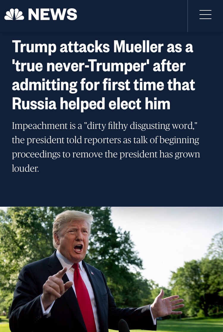 Mueller zeroed in on Russian meddling during his public comments, solemnly saying, "I will close by reiterating the central allegation of our indictments, that there were multiple, systematic efforts to interfere in our election. And that allegation deserves the attention of every American."