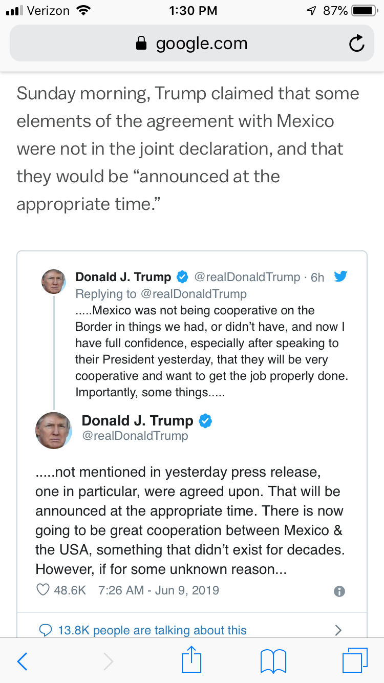 Trump earlier on Friday suggested the talks were covering trade in agriculture, and not just border security issues as members of his administration had said -- and that the State Department communique listed. If a deal was made, Trump said at the time, “they will begin purchasing Farm & Agricultural products at very high levels.”