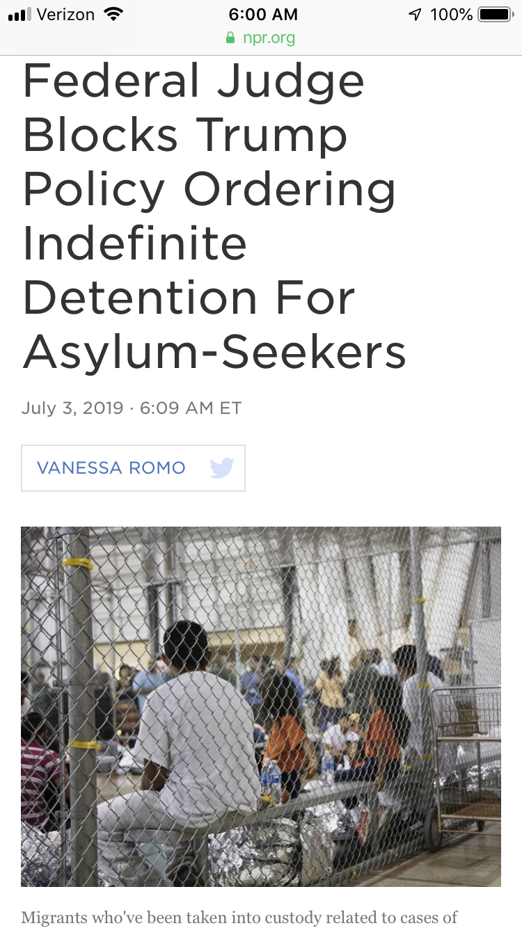 I see children drowning in the Rio Grande, I see mothers separated from children, I see 82 refugees cramped in a cell fit for only 40 people