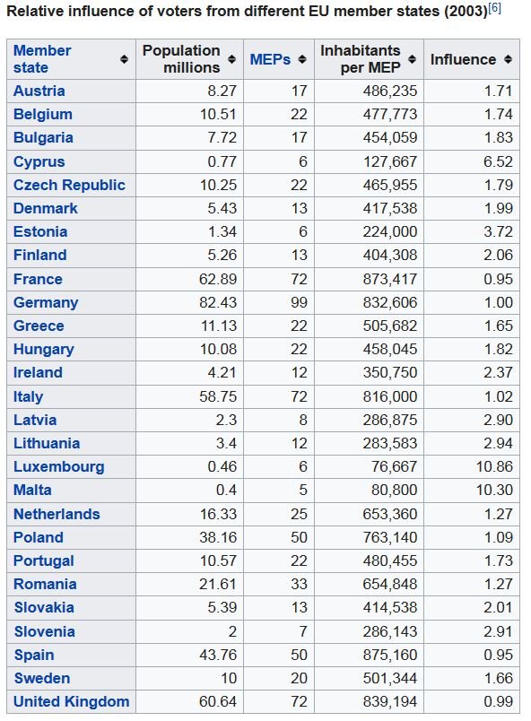 What are you talking about? Luxembourg has 11 times the seats of Germany on a pro rata basis. That's not democratic.