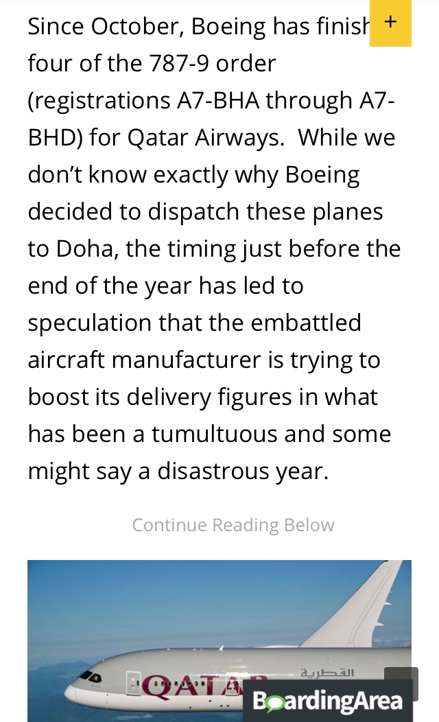 Boeing made a fake delivery to Qtar when the interiors were not finished.