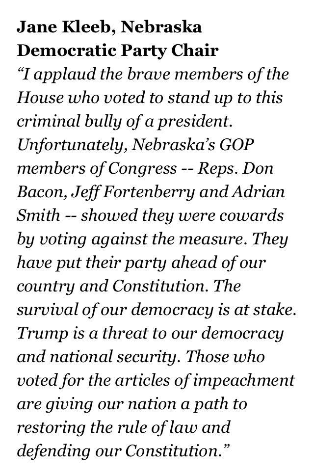 Bleh. She's going full 'both sides!!' as if the yalping uberrubes like Gaetz, Gohmert, Jordan, et al. had no choice but to be noxious, dissembling blowhards. The evil radical left socialist Democrat Party left them no other option. She ignores the fact that Democratic leadership resisted initiating impeachment despite the fact that plenty of back-benchers were ready to go there over previous blatant malfeasance by Trump. She agrees that there was a real demonstration of guilt as described in her quote from Hamilton, but nonetheless implies that impeachment was merely a partisan attack on the president. She's grandstanding, and acts as if she thinks that her censure bill (toothless finger-wagging) would somehow be a purer and less partisan route than impeachment. Meanwhile, Trump continues to try to short-circuit the election. Let him and the win-at-any-cost Republicans have their way while the high-minded patriotic centrists stand to one side, on their principles of 'cooperation' and not dividing the country.Joe wrote: ↑Fri Dec 20, 2019 4:02 pmWell, here's her explanation. I don't see her censure proposal having any impact on Trump unless it comes from both the House and Senate, and Moscow Mitch would rather have all his teeth pulled than give the Democrats any kind of victory.tattuchu wrote: ↑Thu Dec 19, 2019 8:04 pmTo be fair, she didn't vote "P" for present, she voted "P" for Putin.Tero wrote: ↑Thu Dec 19, 2019 1:47 amTulsi the fake Democrat
